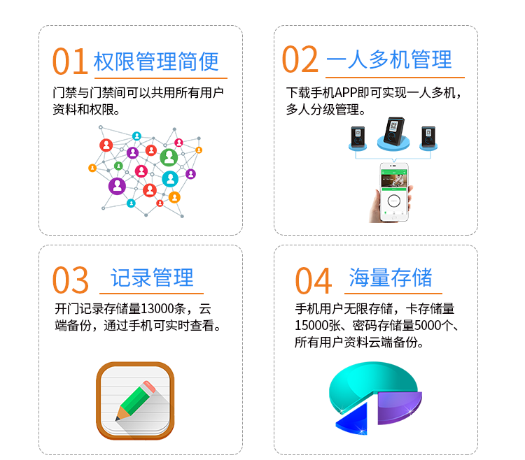 4、二维码开门权限可通过门禁软件灵活设置:哪部手机、哪些时间段可以开哪些门;
