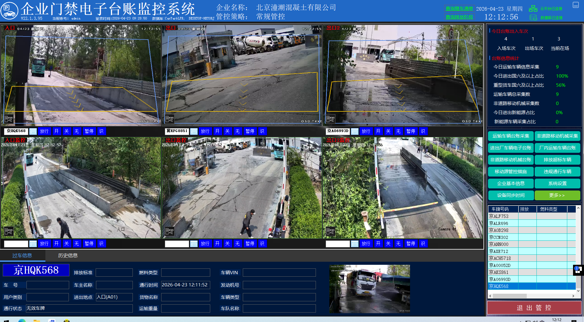 用于自动登记车辆信息生成电子台账上传到当地监管平台,通过平台调取车辆排放情况回传数据,自动拦截不符合排放标准的车辆